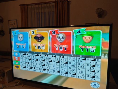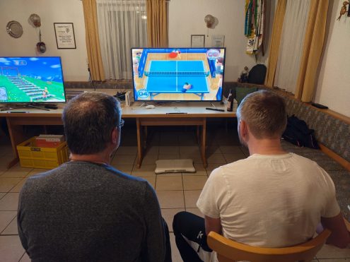 Am 13.03.2026 traf sich die Familiengruppe des Schwäbischen Albvereins um 18 Uhr im Vereinskeller. An zwei Fernsehern wurde gegeneinander gekämpft, gerannt und gesprungen – ob bei Wii Party, wo vor allem die Jüngsten großen Spaß hatten, oder bei Wii Sports, welches wiederum die ältere Generation im Bogenschießen zu Höchstleistungen trieb. Beim Kajakfahren befanden sich mehr Boote im Schilf als auf der Strecke und die unkontrollierten Bewegungen sorgten für große Belustigung bei den Zuschauenden. Beim Tennisdoppel rannten die Mii wie von Zauberhand immer dahin, wo der Ball gerade nicht war. Beim Bowling ließ der jüngste Teilnehmer die andere wortwörtlich alt aussehen. Bis spät in die Nacht wurde unerbittlich um den Schatz auf der Abenteuerinsel gekämpft.